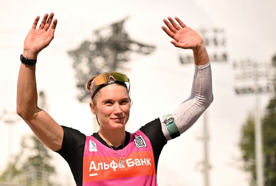 Russia's Irina Kazakevich is seen after the women's 10km sprint event during a summer stage of the Biathlon Commonwealth Cup at the Laura Ski and Biathlon Center in Sochi, Russia.07.09.2023#8510680