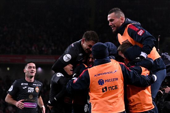Spartak's players celebrate a goal during the Russian Premier-League soccer match between Spartak Moscow and CSKA Moscow, in Moscow, Russia.08.10.2023#8532577