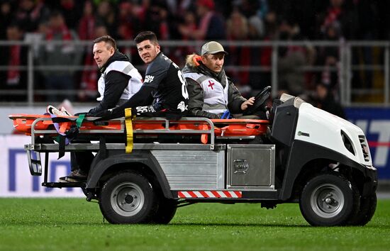 CSKA's Victor Mendez is carried off the pitch on a stretcher after being injured during the Russian Premier-League soccer match between Spartak Moscow and CSKA Moscow, in Moscow, Russia.08.10.2023#8532566