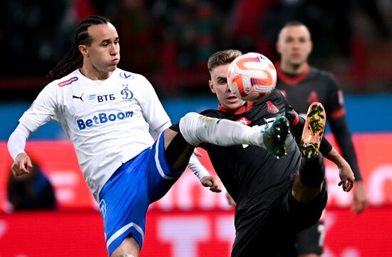 Dynamo's Luka Gagnidze struggles for a ball during the Russian Premier-League soccer match between Lokomotiv Moscow and Dynamo Moscow, in Moscow, Russia.21.10.2023#8540507