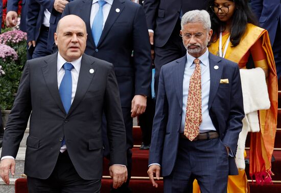 Secretary General of the Shanghai Cooperation Organization (SCO) Zhang Ming, Pakistani Foreign Minister Jalil Abbas Jilani, Uzbek Prime Minister Abdulla Aripov, Kazakh Prime Minister Alikhan Smailov, Chinese Premier Li Qiang, Kyrgyz Prime Minister Akylbek Japarov, Russian Prime Minister Mikhail Mishustin, Tajik Prime Minister Kokhir Rasulzoda, Iranian First Vice President Mohammad Mokhber, Indian Foreign Minister Subrahmanyam Jaishankar and Director of the Executive Committee of the SCO Regional Anti-Terrorist structure Ruslan Mirzaev attend a photographing ceremony of the heads of delegations of the Shanghai Cooperation Organization (SCO) member states, in Bishkek, Kyrgyzstan.26.10.2023#8543168