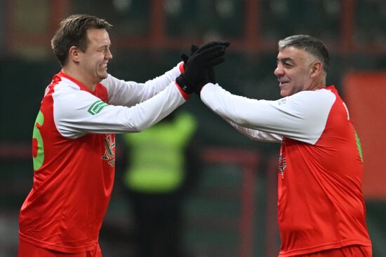 Lokomotiv's Ruslan Pimenov and Zaza Janashia are seen during the retro soccer match between Lokomotiv Moscow and CSKA Moscow, in Moscow, Russia.19.11.2023#8561390