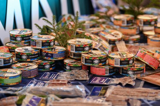 The International RUSSIA EXPO Forum and Exhibition. The Tastes of Yamal gastronomic show. Legend of Yamal canned fish.