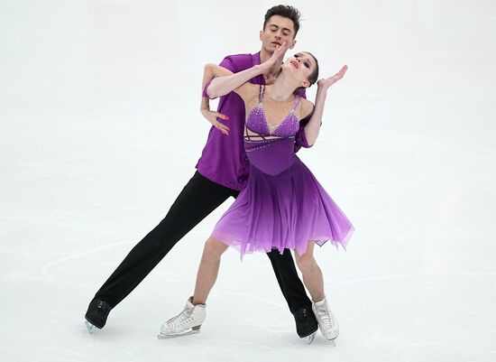 Ice dancers Sofia Kachuskina and Mark Volkov perform their rhythm dance during the Grand Prix of Russia - Golden Skate of Moscow event, the 6th stage of Russian Figure Skating Cup, at the Megasport Arena in Moscow, Russia.26.11.2023#8566734