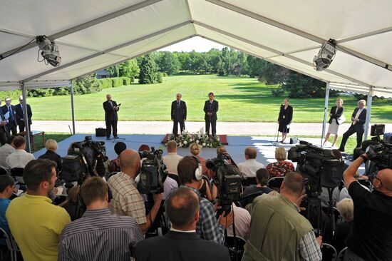 June 25, 2013. Russian President Vladimir Putin, second left, and his Finnish counterpart Sauli Niinisto, second right, pictured during a joint news conference held at the latter's summer residence Kultaranta outside Turku. Left: Viktor Vekselberg, president of the Skolkovo Foundation and board chairman of Renova Group.25.06.2013#2209204