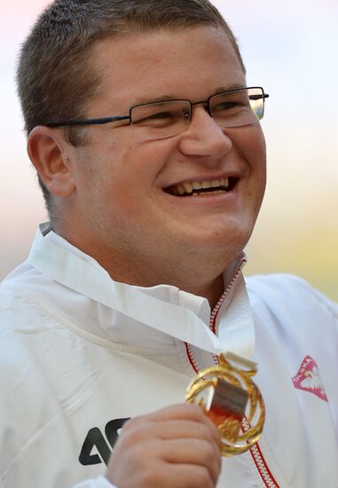 Pawel Fajdek (Poland), winner of the gold medal in the men's hammer throw at the 2013 IAAF World Championships, during the medal ceremony.13.08.2013#2263390