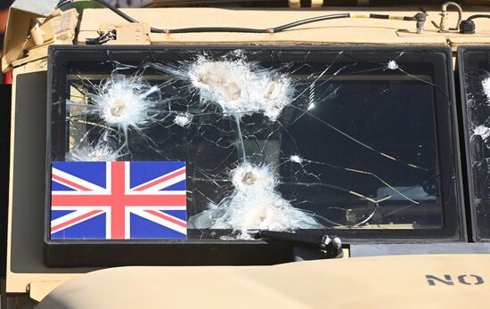 Armoured vehicles are on display at an exhibition of foreign-made military equipment captured in the course of Russia's military operation in Ukraine, on Poklonnaya Hill in Moscow, Russia.01.05.2024#8672632