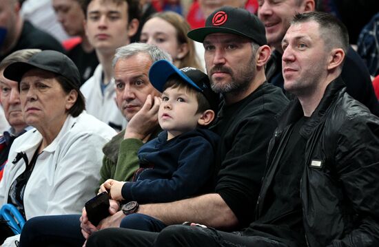Ice hockey player Alexander Ovechkin and his son Sergey are seen during the VTB United League basketball semifinal match between CSKA Moscow and Zenit St. Petersburg, in Moscow, Russia.12.05.2024#8681108