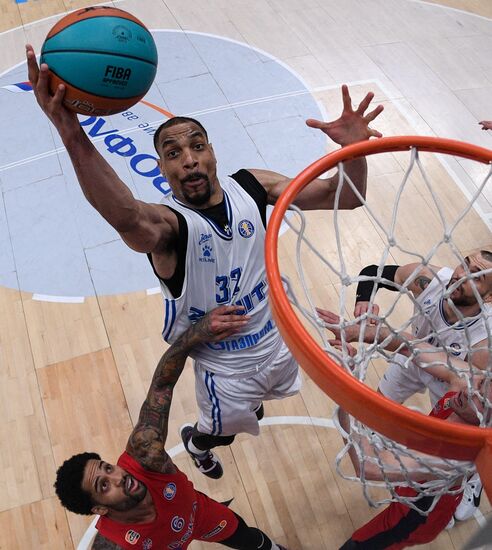 Zenit's Vincent Hunter, left, dunks a ball during the VTB United League basketball semifinal match between CSKA Moscow and Zenit St. Petersburg, in Moscow, Russia.12.05.2024#8681085