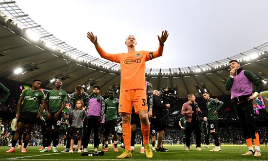 FC Krasnodar's goalkeeper Matvey Safonov and his team celebrate the victory in the Russian Premier-League soccer match between Dynamo Moscow and Krasnodar, in Krasnodar, Russia.25.05.2024#8692022