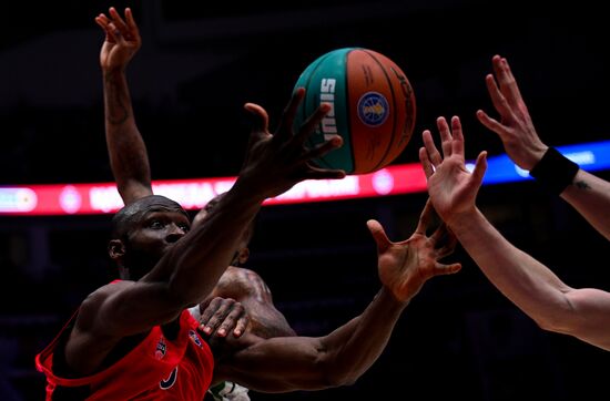 CSKA's Casper Ware and UNICS' Vyacheslav Zaytsev struggle for the ball during the VTB United League basketball final match between CSKA Moscow and UNICS Kazan, in Moscow, Russia.02.06.2024#8696767