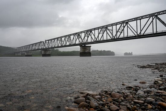 A general view shows a railway bridge over the Bureya river of the Baikal-Amur Mainline (BAM) in Amur region, Russia. In 2024, Russia celebrates the 50th anniversary of the launch of the BAM construction.08.06.2024#8704594