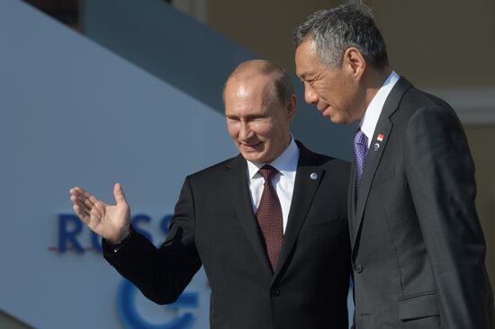 Russian President Vladimir Putin, left, and Prime Minister of Singapore Lee Hsien Loong during an official welcome of G20 heads of state and government, heads of invited states and international organizations.05.09.2013#2278349