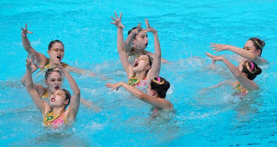 Members of team Russia compete in the artistic swimming team free routine during the 2024 BRICS Sports Games at Aquatics Palace in Kazan, Republic of Tatarstan, Russia.15.06.2024#8707828