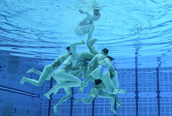 Members of team Russia compete in the artistic swimming team free routine during the 2024 BRICS Sports Games at Aquatics Palace in Kazan, Republic of Tatarstan, Russia.15.06.2024#8707837