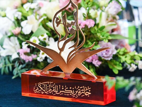 The trophy is displayed during the BRICS Holy Quran Award in Kazan, Republic of Tatarstan, Russia. From July 24 to 26, 2024, the strongest Quran reciters from BRICS member states, the Arab-Muslim world, Africa, and the CIS will compete in the category of "Tilawah" (skillful recitation of the Holy Quran).24.07.2024#8733429