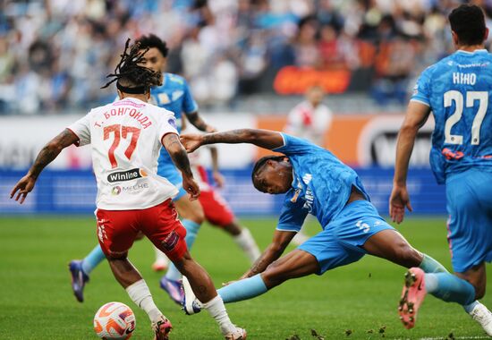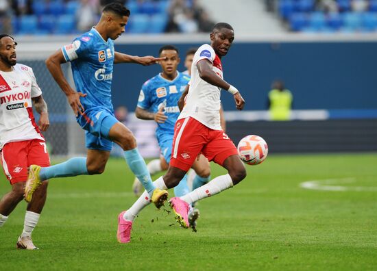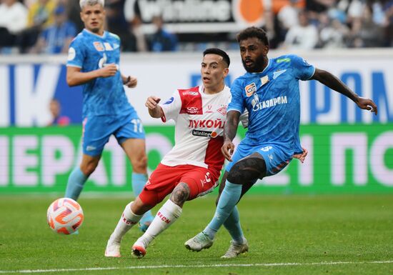 Spartak's Christopher Martins struggles for the ball during the Russian Premier-League soccer match between Zenit St. Petersburg and Spartak Moscow, in St. Petersburg, Russia.24.08.2024#8749265