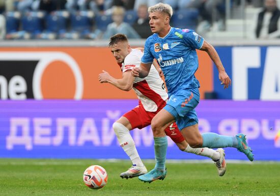 Spartak's Oleg Reabciuk, left, and Zenit's Andrey Mostovoy struggle for the ball during the Russian Premier-League soccer match between Zenit St. Petersburg and Spartak Moscow, in St. Petersburg, Russia.24.08.2024#8749273