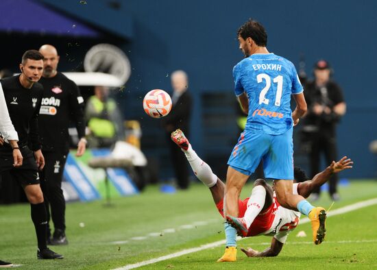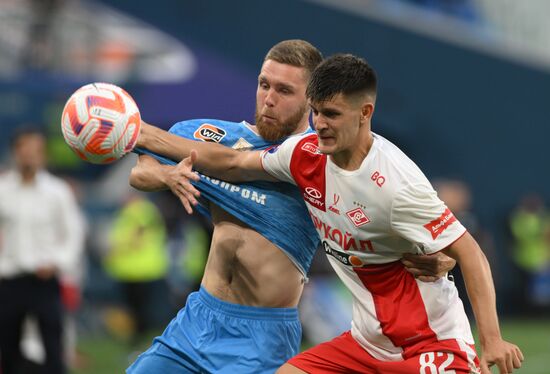 Spartak's Daniil Khlusevich, right, and Zenit's Ivan Sergeev struggle the ball in the air during the Russian Premier-League soccer match between Zenit St. Petersburg and Spartak Moscow, in St. Petersburg, Russia.24.08.2024#8749327