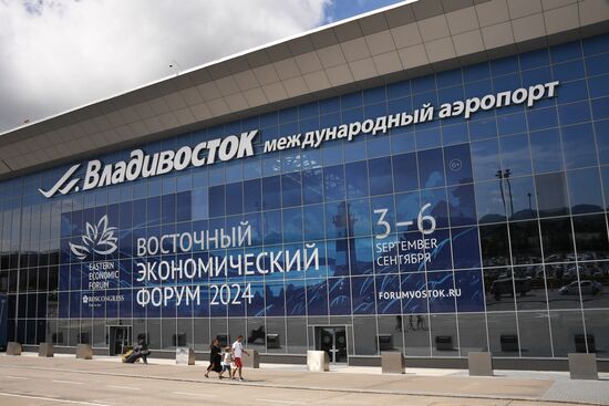 An EEF banner is displayed at Vladivostok International Airport ahead of the 2024 Eastern Economic Forum (EEF), which will be held September 3-6 at the Far Eastern Federal University (FEFU) in Vladivostok, Russia.29.08.2024#8752305