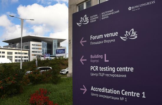 An EEF banner is displayed ahead of the 2024 Eastern Economic Forum (EEF), which will be held September 3-6 at the Far Eastern Federal University (FEFU) in Vladivostok, Russia.29.08.2024#8752311
