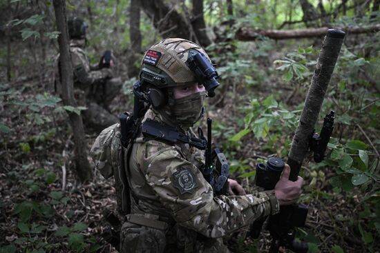 Russian servicemen of the Hades sniper group of Akhmat special forces are seen on a mission, in Kursk region, Russia.07.09.2024#8760201