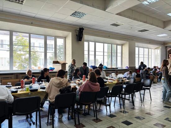 Local residents gather at a temporary accommodation centre located at the Vorovsky Palace of Culture following an alleged Ukrainian drone attack in the course of Russia's military operation in Ukraine, in Ramenskoye, Moscow region, Russia. One person dead and three others injured as a result of a drone attack on an apartment block in the Ramenskoye urban district. Russian air defences intercepted 144 drones launched by Ukraine overnight toward the Russian regions of Bryansk, Kursk, Tula, Belgorod, Kaluga, Voronezh, Lipetsk, Oryol and the Moscow suburbs, the Russian Defence Ministry said on September 10.10.09.2024#8761203