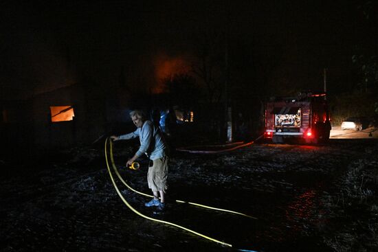 Firefighters extinguish a fire in the village of Stepnoe in the Antratsitovsky municipal district of the Lugansk People's Republic, Russia.14.09.2024#8765685