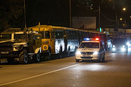 Interior Ministry convoy of vehicles on Podolskikh Kursantov street in Biryulevo district in western Moscow.13.10.2013#2300659