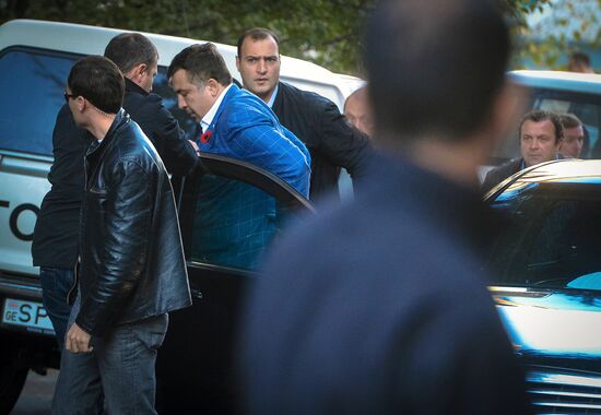 Georgian President Mikheil Saakashvili leaves a polling booth at a polling station in Tbilisi.27.10.2013#2308957
