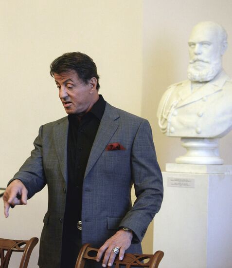 American actor, director and artist Sylvester Stallone at a news conference dedicated to the opening of his art exhibition at the Engineer Castle of the Russian Museum in St. Petersburg.27.10.2013#2308754
