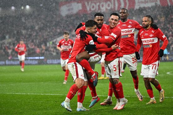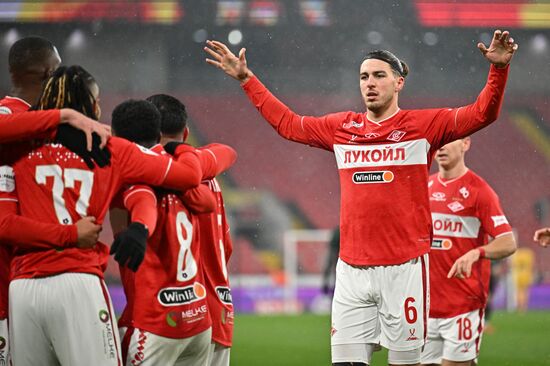 Spartak's players celebrate a goal during the Russian Premier-League soccer match between Spartak Moscow and Lokomotiv Moscow, in Moscow, Russia.23.11.2024#8811546
