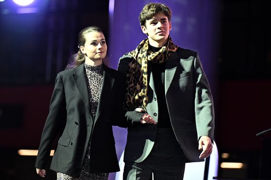 Alexandra Stepanova and Ivan Bukin attend the draw for the 2025 Russian Figure Skating Championships which will be held from December 18 to 23, 2024, in Omsk, Russia.18.12.2024#8830946