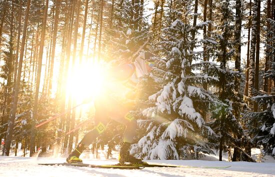 Alexander Loginov competes during the men's 10 km sprint event of the 3rd stage of the Biathlon Commonwealth Cup in Chaikovsky, Perm Territory, Russia.20.12.2024#8832314