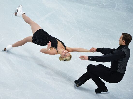 Kirsten Moore-Towers and Dylan Moscovitch (Canada) perform a free skating program in the pairs' ice dancing competition at the 6th stage Figure Skating Grand Prix in Moscow.23.11.2013#2325116