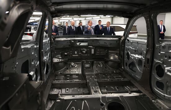 Russian President Vladimir Putin, accompanied by Samara Region Governor Vyacheslav Fedorishchev, Deputy Head of the Russian Presidential Administration Maxim Oreshkin, AvtoVAZ First Executive Vice-President for Strategy and Technical Development Evgeny Shmelev and Industry and Trade Minister Anton Alikhanov, visits the AvtoVAZ car manufacturing plant in Togliatti, Samara region, Russia.28.01.2025#8847987