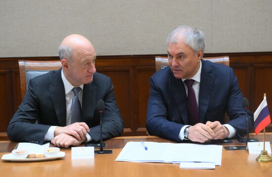 Russian State Duma Deputy Chairman Alexander Babakov, left, and Russian State Duma Speaker Vyacheslav Volodin attend a meeting with Indian Vice-President Jagdeep Dhankhar, in New Delhi, India.03.02.2025#8850984