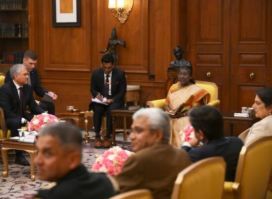 Russian State Duma Speaker Vyacheslav Volodin and Indian President Droupadi Murmu attend a meeting in New Delhi, India.03.02.2025#8851027
