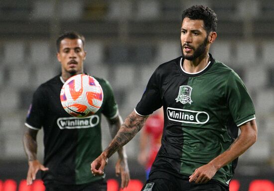Krasnodar's Kevin Castano kicks a ball during the Russian Premier-League Winter Cup third place soccer match between CSKA Moscow and Krasnodar at the Al Nahyan Stadium, in Abu Dhabi, United Arab Emirates.10.02.2025#8855829