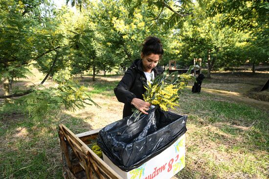 A man harvests mimosa in the village of Nizhnyaya Shilovka, Krasnodar region, Russia.13.02.2025#8857742