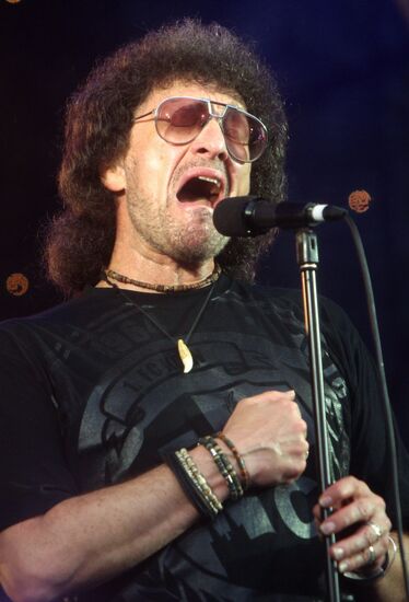 Auktsyon band leader Oleg Garkusha, right, performing at the "Estate. Jazz 2009" festival in Arkhangelskoye estate-museum park, Moscow Region.06.06.2009#400856