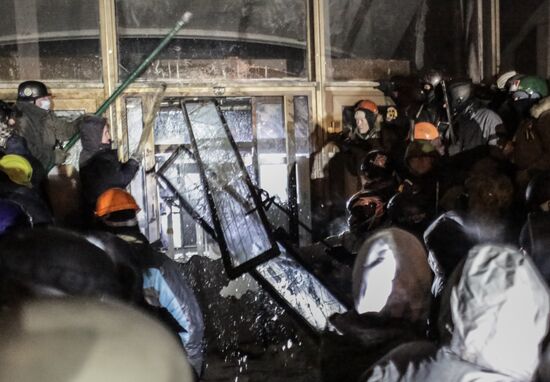 Pro-European integration protesters attack the Ukrainian House building in downtown Kiev.26.01.2014#2352781