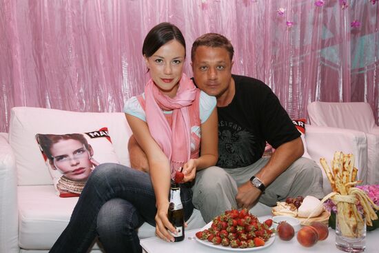 Actors Agniya Ditkovskite (L) and Alexei Serebryakov attending a party at the Martini terrace during the 20th Kinotavr open film festival in Sochi.14.06.2009#402833