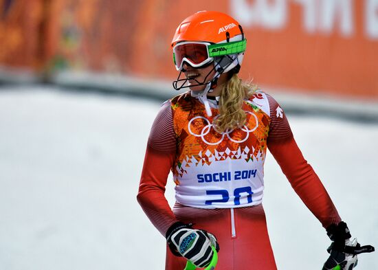 Denise Feierabend (Switzerland) at the finish of the second run in the women’s slalom at the XXII Olympic Winter Games in Sochi.21.02.2014#2384648