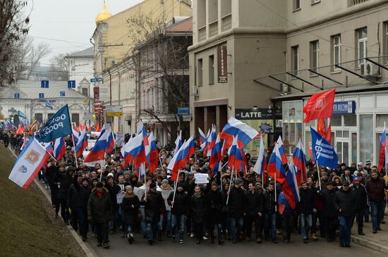 Members of youth and veteran patriotic organizations during a march held in Moscow in support of Russian compatriots in Ukraine.02.03.2014#2390544