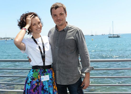 Actress Anastasiya Tsvetayeva and publisher of the Russian version of the main Hollywood magazine Variety, general director of "Planeta Inform" Dmitry Litvinov at the Russian Pavilion in Cannes, during the 67th Cannes Film Festival.17.05.2014#2431670