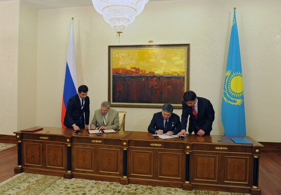 May 29, 2014. Deputy Energy Minister Anatoly Yanovsky (second left) and Minister of Oil and Gas of Kazakhstan Uzakbai Karabalin (second right) during the ceremony of the signing of joint documents in Astana.29.05.2014#2439847