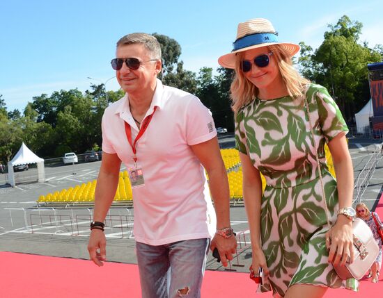 Restaurant owner Anton Tabakov and his wife Anzhelika before screening of the "Correction Class" film directed by Ivan Tverdovsky during the 25th Open Russian Film Festival Kinotavr in Sochi.04.06.2014#2443431