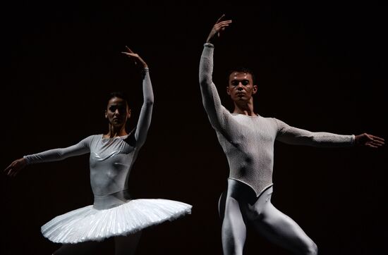 Scottish Ballet dancers perform in the one act ballet "Silhouette" directed by Cristopher Hampson. The ballet is being presented as part of the Chekhov International Theatre Festival held at the Mossovet Theatre.04.06.2014#2443143