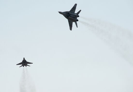 MiG-29 fighter jet aircraft compete at the Aviadarts 2014 international piloting contest at the Air Force Academy base, Voronezh.26.07.2014#2468617